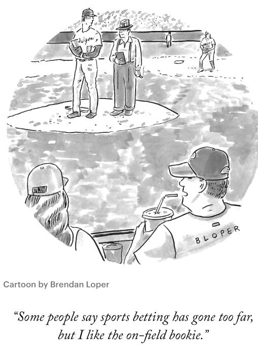 It might not be too long before bookies are free to roam the field, dugout, and clubhouse, as depicted in a recent cartoon from The New Yorker (see below).